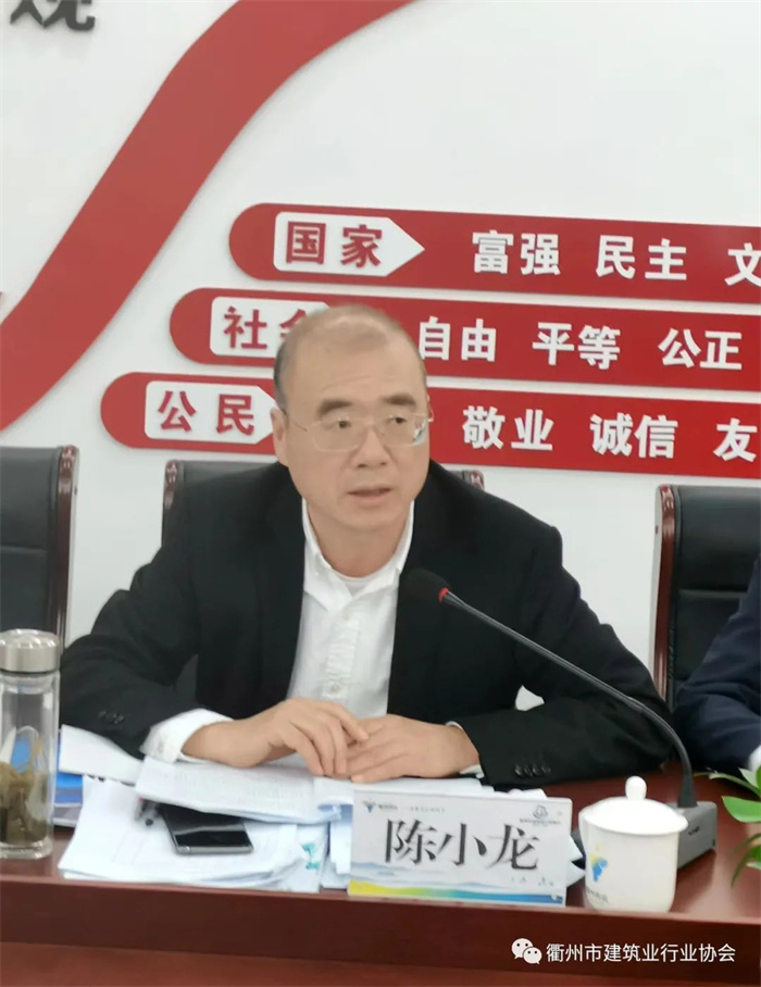 10月31日下午, 衢州市建筑业行业协会在协会二楼会议室召开第七届第一次会长办公会议,市建协会长陈小龙、秘书长余国明、各县(市)、区协会负责人以及市建协近40余家副会长单位及监事单位参加会议。会议由会长陈小龙主持。
