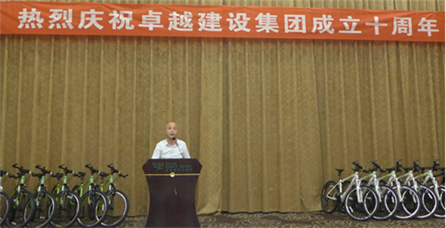 2015年 7月18日,卓越建设集团“10周年庆典”在冠发君悦大酒店5楼华夏厅隆重举行。出席庆典活动有主管部门领导及社会各界朋友,还有公司各子(分)公司的经理,约100人从全国各地赶到参加了本次集团10周年庆典。会议由,集团公司副总经理余银泉主持。