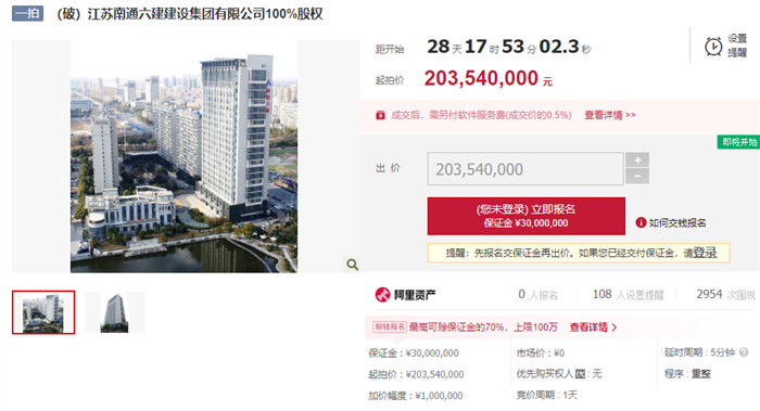 而谁能想到12年后,阿里法拍网正式上架了关于南通六建100%股权的拍卖公告。