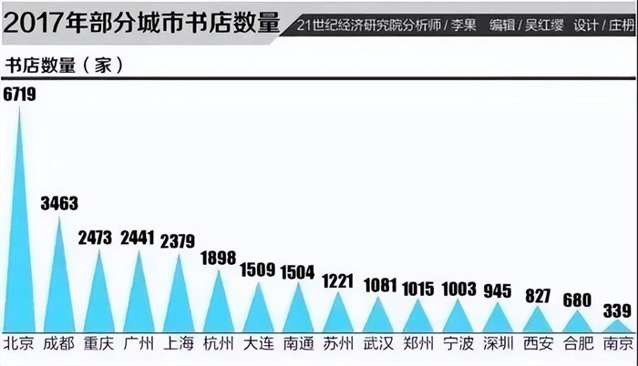 最后,给大家分享一个有意思的数据,来自21世纪的数据,全国城市书店总量上,南通力压众多高能级一二线城市,排在第八。